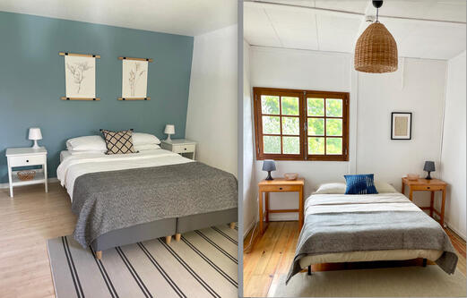 - Brandon: +1 323 573 7629 (English only)The main building, Casa Grande, is open from 9 am - 9pm and can be accessed through the front left blue door. Please feel free to use the library or living room as needed. You are welcome to borrow any books during your stay. Please return them and help us keep everything in order for our next guests.While we encourage you to unplug as much as possible during your time here, WiFi is available in the library. (tEthqY3ebMyCc5X4)Please do not eat or drink in the rooms or library. Please use the designated areas of the dining hall or outdoor areas with tables. Thank you.Coffee is available in the dining hall throughout the day as needed. Please help yourself.Our water is safe to drink from the faucets. We are so blessed to have the ongoing source of well water to serve our trees and gardens. Please be thoughtful in your use of water so our well stays happy and flowing for years to come.We strive to be as sustainable as possible, so please help us recycle and minimize any waste or use of one time plastics, etc. We use the organic veggies and fruits for many of our meals served at the retreat. We also source from our local village and farms whenever possible. Any of our green food waste and paper waste is added to the compost pile in our garden, so please feel free to add to the designated compost bin that we will take to the garden.We are a small team and employ people in our local community to help care for the grounds and facilities as well as through volunteers. Please help us keep O Refúgio beautiful for our future guests.For guests in our private studios:Please feel free to use the shared kitchenette in your studio to cook your meals and use whatever basic cooking utensils we have for you. We provide some coffee and tea options as well. You are also welcome to pick fresh produce from the garden or fruit trees when something is ready to harvest.If you need to buy groceries, there is a small market next to our main gate. Otherwise, there is a Continent and Intermarché about 15 minutes drive from here.The industrial kitchen is not available to the public and is reserved for private chefs for larger groups only.If you want to walk to a cafe, there are a few traditional options just a 5-minute walk from O Refúgio if you turn right from our gate: Café Central and A Preguiceira.At the end of your stay, please place your sheets, pillow cases, and duvet cover in a pile on the floor. Please keep your towel hanging to dry so as to not damage any wood. This will help lighten the workload for us and our local helpers.For guest staying with a group in Casa Grande:Please respect our other guests with the shared bathrooms. Please be sure to hang your towel(s) on the hook in your bedroom. You can use the hooks in the bathroom as needed as you use the shower or restroom. If you would like a fresh towel, please let us know.We do not clean your room during your stay. Please use the woven waste bin for non perishable trash items. We do recycle, so please do not place any wet items in the bin. Please dispose of such items in the main bins by the kitchen.At the end of your stay, please place your sheets, pillow cases, and duvet cover in a pile on the floor. Please keep your towel hanging to dry and not on the floor or beds. This will help lighten the workload for us and our local helpers.The industrial kitchen is not available to the public and is reserved for private chefs for larger groups only.Our favorite restaurants in the area are: